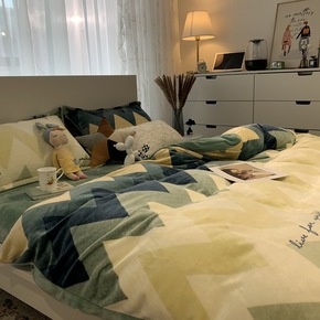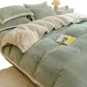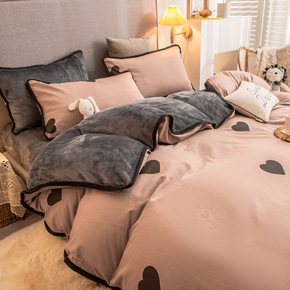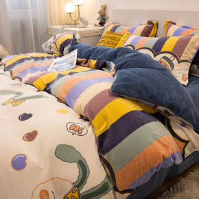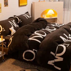 珊瑚绒双面牛奶绒床上四件套冬季加厚简约北欧混搭风三...