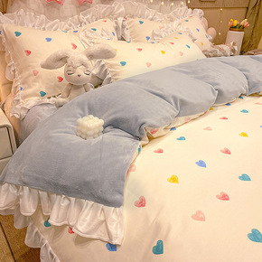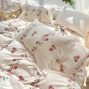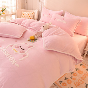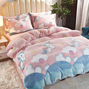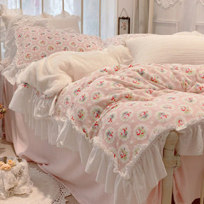 ins少女心花朵婴儿绒加厚牛奶绒床上四件套冬季双面...