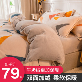 冬季保暖牛奶法兰绒床上用品四件套双面法莱珊瑚绒三件...