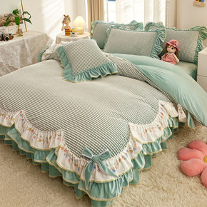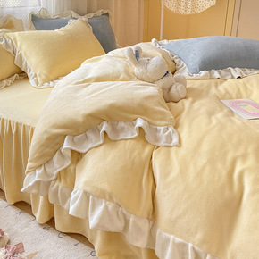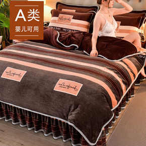 床裙款加厚牛奶法兰绒床上四件套冬季双面法莱珊瑚绒被...