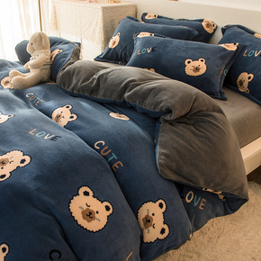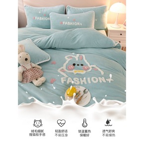 冬季加厚牛奶绒四件套双面加绒法兰绒床单珊瑚绒被套保...