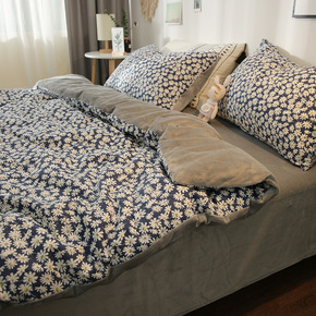 小雏菊简约加厚保暖全棉纯棉加绒被套珊瑚绒水晶绒床单...