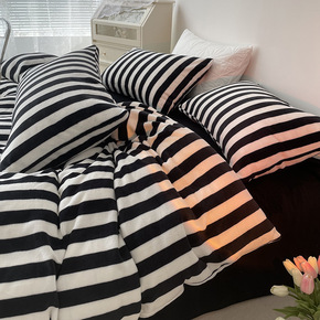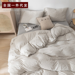 日系原宿全棉四件套家用双人水洗棉纯棉被套 条纹简约...