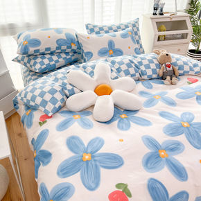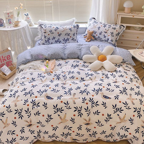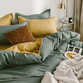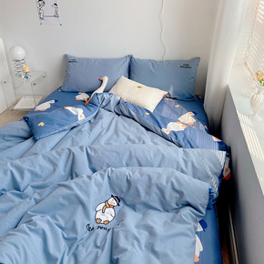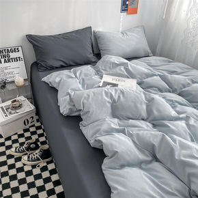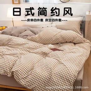 简约无印风水洗棉四件套磨毛床单床笠被套宾馆宿舍床上...