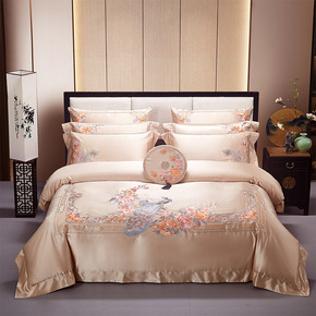 轻奢水洗真丝提花四件套 真丝床单被套床上用品南通厂...