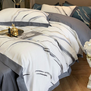 北欧风格床上四件套100支长绒棉四件套奢华柔软全棉...
