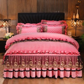 南通产地 玫瑰印花小心机公主风四件套床笠款床裙床罩...