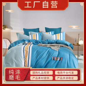 厂家直供家纺批发简约斜纹磨毛四件套植物羊绒棉床单被...