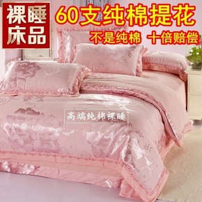 奢品包邮60s贡缎长绒棉纯色四件套 全棉床上用品四...