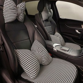 汽车坐垫透气单片凉垫千鸟格亚麻座垫腰靠头枕四季女...