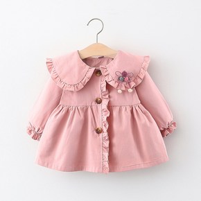 2021年秋季新款中小童风衣外套 韩版小花花边风衣...