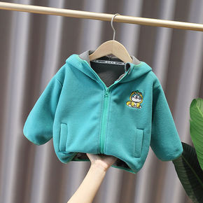 女童拉链连帽春秋装2021洋气小童卡通外套宝宝春款...