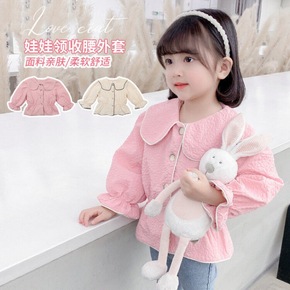 女童春装小香风外套儿童娃娃领短款风衣女宝宝春秋时髦...