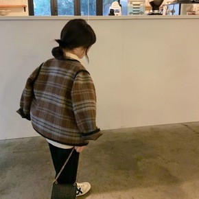 女童外套韩版格子复古洋气毛呢夹棉加厚上衣外套秋冬装...