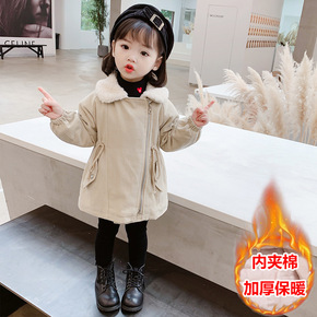 女宝宝韩版加厚保暖风衣2021女童秋冬装夹棉保暖派...
