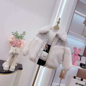 女童毛毛外套冬装新款中大童儿童夹棉亮片冬季厚上衣...