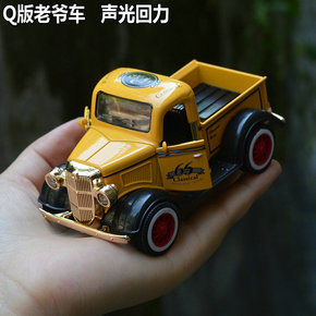 厂家直销Q版复古老爷车仿真合金汽车模型声光回力儿童...