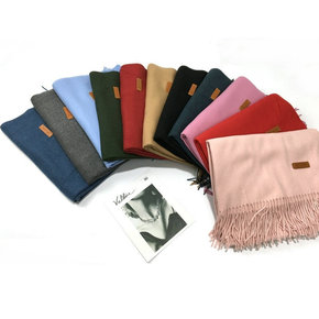 秋冬新款纯色羊绒拉毛围巾 韩版皮标加厚保暖流苏空调...