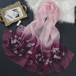 上海丝绸真丝丝巾刺绣羊毛丝巾高档围巾秋冬渐变色新款...