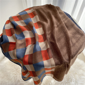 纯色格子拼色围巾女春夏旅游披肩装饰头巾秋冬保暖围脖...