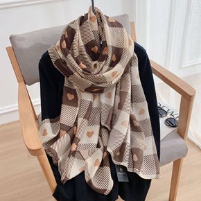 2022新款时尚爱心围巾英伦格子加厚保暖围脖女士长...
