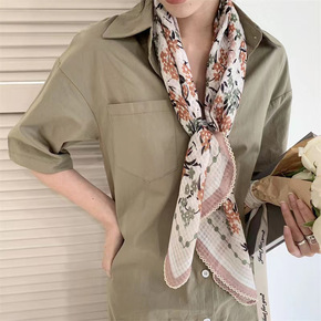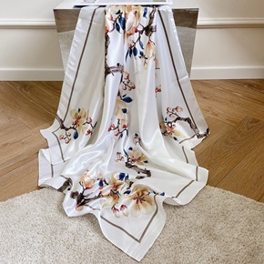 90大方巾花卉女士丝巾礼品围巾春秋款洋气时尚披肩...