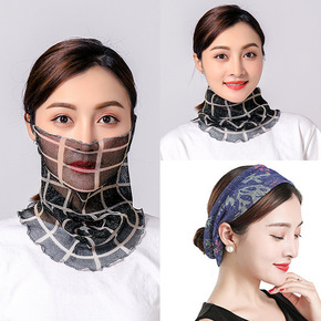 印花加大升级围脖护颈款防晒套头女网金丝纱-...