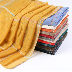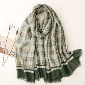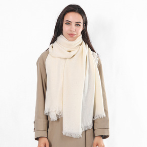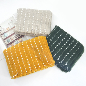 新款条纹真丝羊毛混纺围巾 竖条金丝丝毛丝巾真丝丝巾...