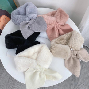 韩版百搭仿濑兔毛围脖加厚单色鱼尾冬季交叉毛领保暖脖...