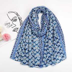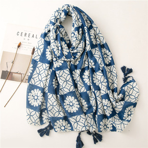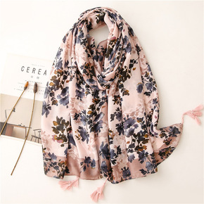 复古文艺民族风浅粉色花朵乱麻棉麻手感围巾保暖防晒丝...
