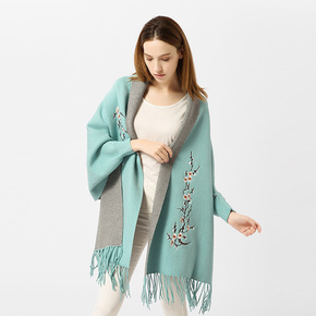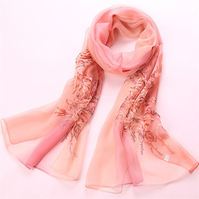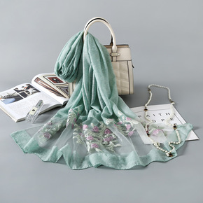2021新款真丝羊毛刺绣围巾女 丝毛绣花桑蚕丝丝巾...