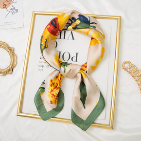 小方巾女洋气文艺韩国百搭花卉丝巾女春秋薄款空姐职业...