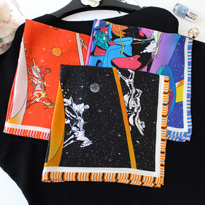 太空赛马气质百搭桑蚕丝素缎真丝55小丝巾方巾装饰围...