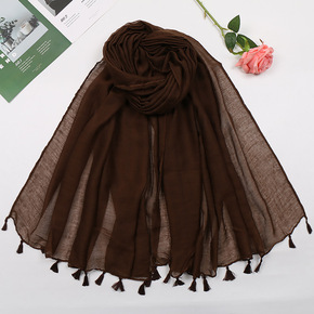 外贸纯色挂须巴厘纱流苏长巾围巾 多用途空调棉麻披肩...