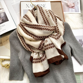 柔软条纹字母款围巾 女春夏季学生复古时尚 遮阳防晒...