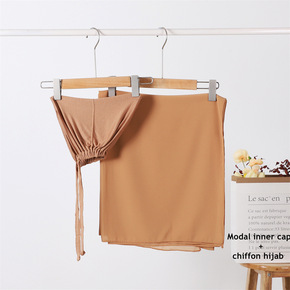 跨境莫代尔弹力松紧系绳打底帽加纯色珍珠雪纺围巾一套...