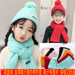 儿童毛球帽子围巾二件套装秋冬季男童女童加厚加绒护耳...