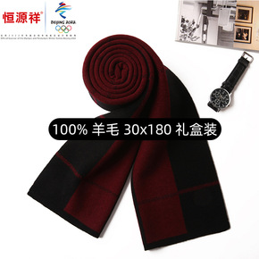 恒源祥集团彩羊纯羊毛围巾男士秋冬高档商务中老年围脖...