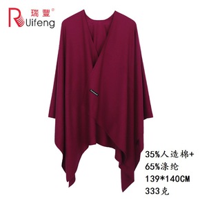 2021新款瑞丰欧美纯色仿羊绒斗篷披肩开叉披肩冬季...
