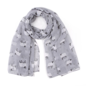 厂家直销新款绵羊印花巴黎纱围巾 动物围巾批发 速卖...