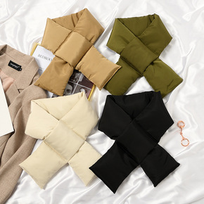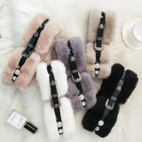 围巾女秋冬韩版系扣皮带百搭纯色交叉保暖仿皮草毛绒拼...