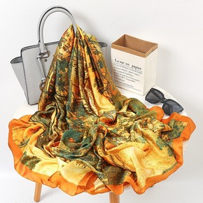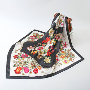 欧美新款女士外贸丝巾 130cm斜纹绸缎腰果花卉印...