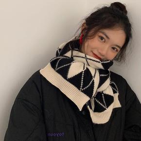 ins时尚格子韩版针织围巾女秋冬季保暖ins学生情...