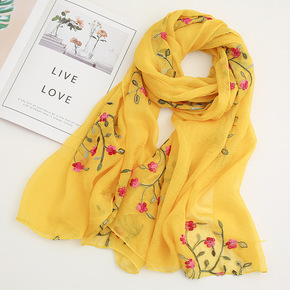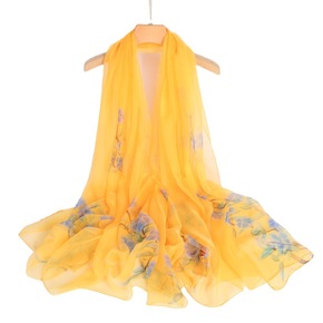 欧根纱丝巾玫瑰梅花枫叶五星蝴蝶刺绣纱巾华之英透明围...