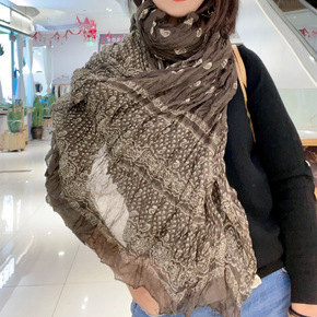 秋冬韩国棉印花自然压皱加长加宽时尚休闲单品保暖围巾...