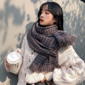 围巾女冬季韩版百搭千鸟格仿羊绒披肩保暖加厚长款格子...