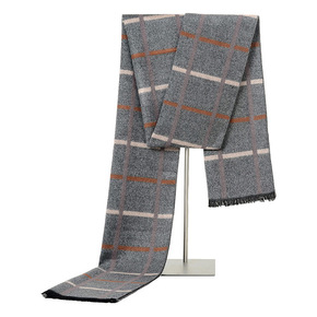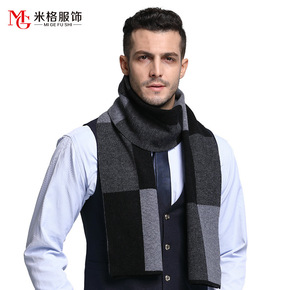 新款针织羊毛围巾男格子围巾时尚穿搭男士羊毛格条围巾...