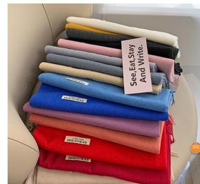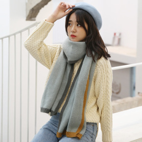 拼色新款仿羊绒围巾女冬季双面保暖纯色针织围巾男士厂...