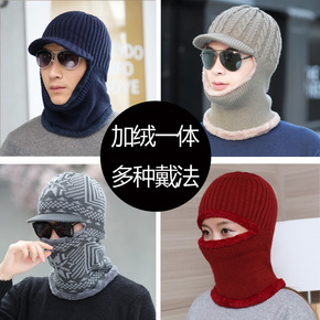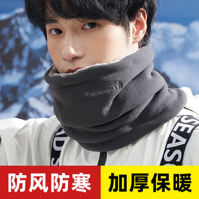 冬季加绒脖套男滑雪骑行针织毛线套头加厚围巾保暖围脖...