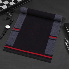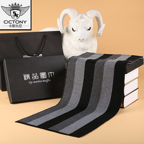 羊毛围巾男时尚条纹商务男士保暖围脖毛线针织围巾男长...